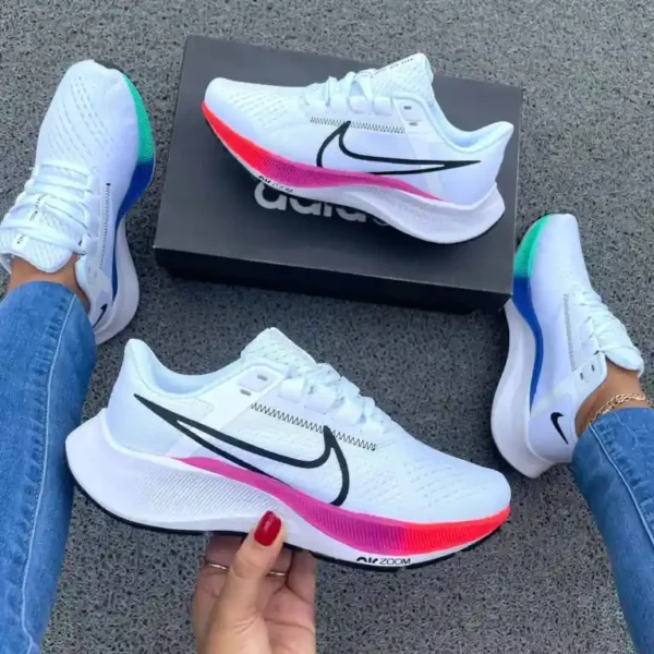 Descubre las NIKE ZOOMX “BLANCA/MORADA”, unas zapatillas deportivas que combinan máxima comodidad y un diseño innovador. Su exterior blanco con detalles en colores vibrantes y la emblemática palomita de Nike en negro las hace perfectas tanto para tus entrenamientos como para crear un look casual y moderno. Disfruta de una amortiguación superior y un ajuste ideal que te acompañará en cada paso. Disponibles en varias tallas para que encuentres el calce perfecto. ¡Haz que tu estilo destaque con este imprescindible de Nike!